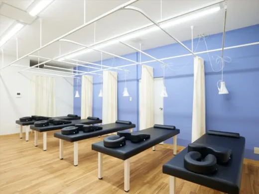 当院では全スタッフがトレーニングスペースを活用し、マッサージだけに頼らないエクササイズを組み合わせた施術を提供しています。