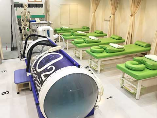 ・最新機器の運用: 楽トレ(複合高周波EMS)、酸素カプセル、アキュスコープ、超音波を用いた最先端の治療。